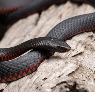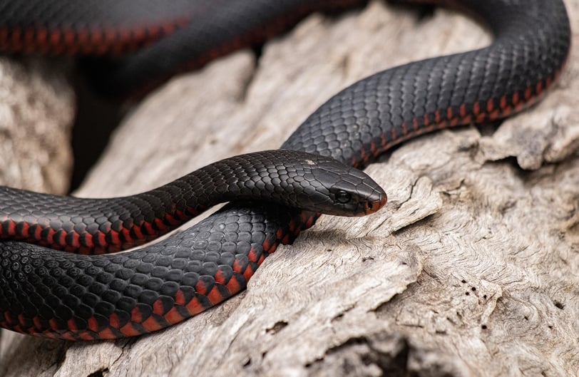 It is interesting to point out that while most reptiles hatch from eggs, red bellied black snakes deliver live young, averaging from 8 to 40 with each litter. While rated as "moderately venomous" bites are relatively rare due to their docile nature and there are no human deaths on record.